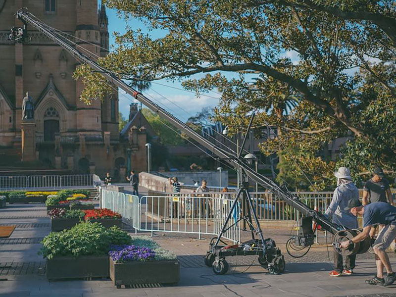 The Jimmy Jib is frequently used in studio scenarios and can be supplied on studio crab dolly wheels built on to a converted HP pedestal, built onto a solid track, or mounted on a conventional dolly.